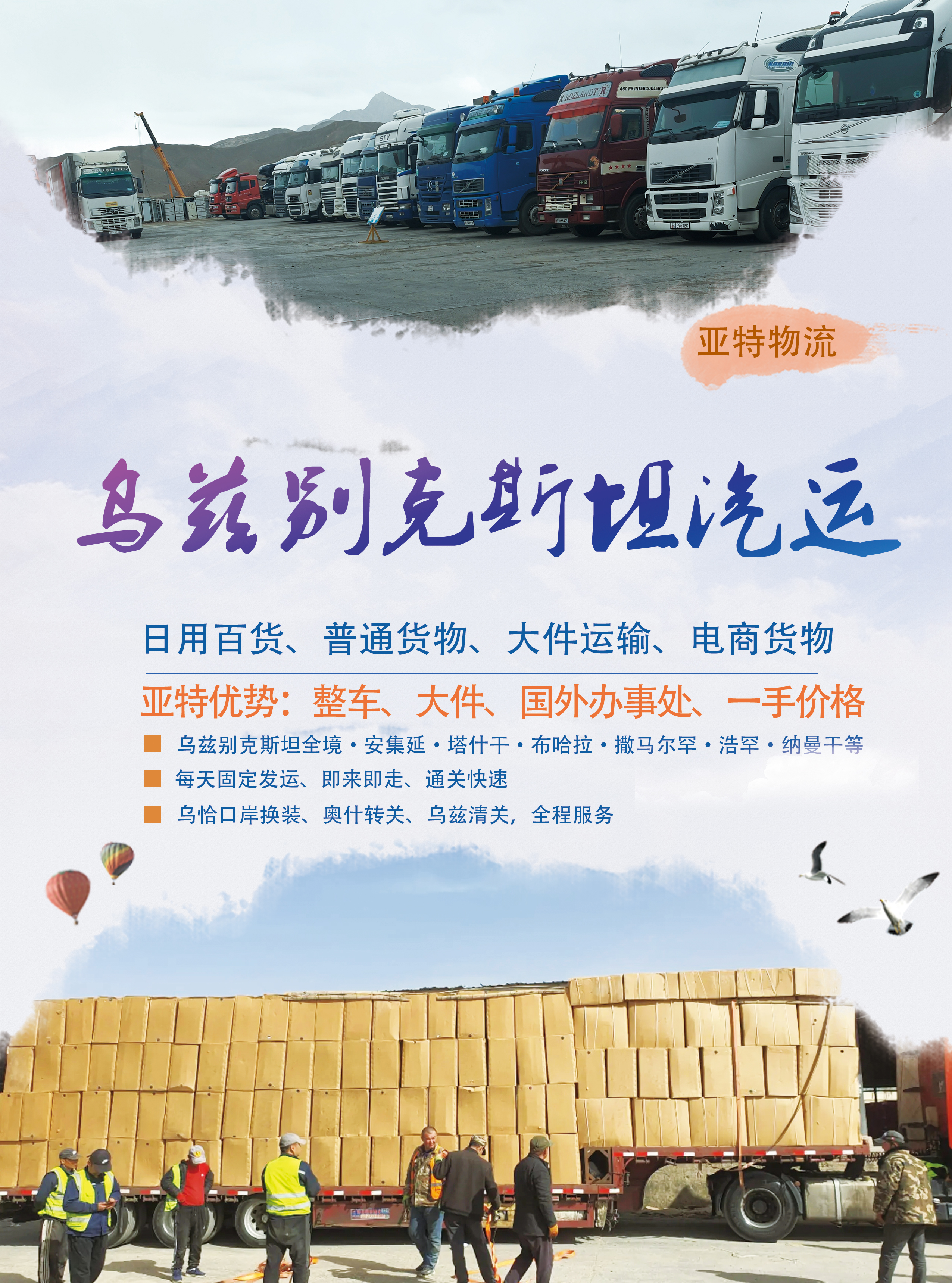 国际汽运服务,提供中国至中亚五国的整车、零担、拼箱等运输;清关代理服务,确保货物顺利通关;仓储配送服务,在伊尔克什坦口岸和安集延地区设有仓库,提供仓储、配送等。